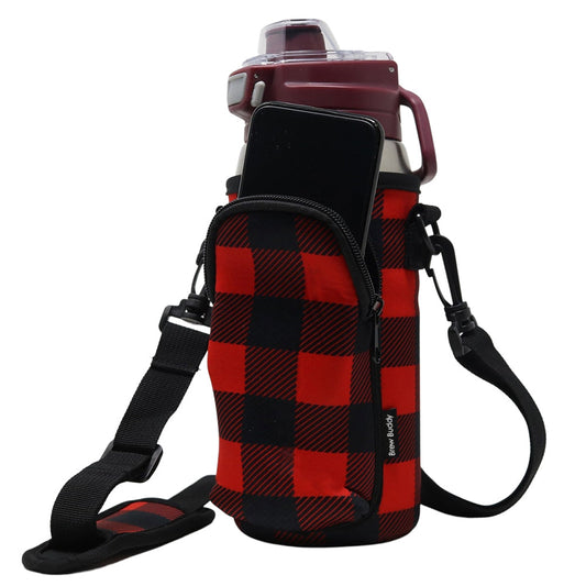 Cross Body Bag Bottle Holder | Red Buffalo Plaid