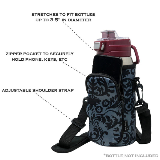 Cross Body Bag Bottle Holder | Grey Damask